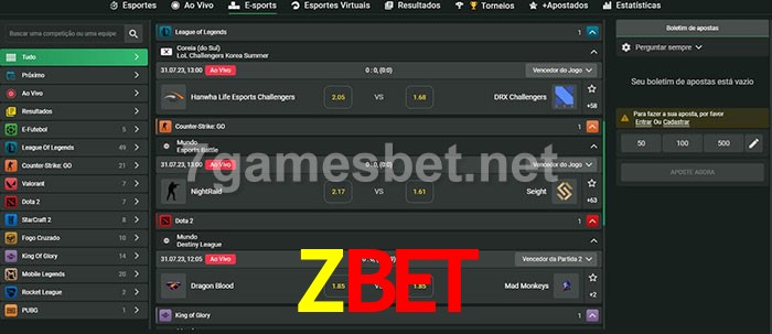 O Zbet oferece uma grande seleção de opções de apostas em e-sports com probabilidades competitivas